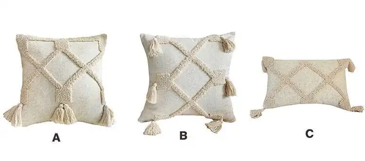 New Tufted technic,Soft and Durable. Geometric Pattern with Tassles decoration. Linen Fabric, Beige color. Simple, Natural and Stylish.