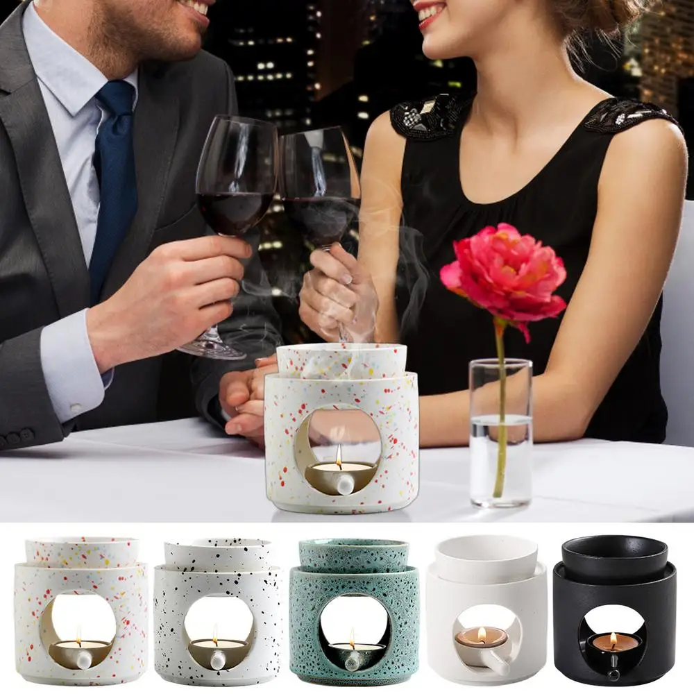 Ceramic Aroma Burner Essential Oil Lamp Hollowing Candle Holder Incense Censer Home Decoration for Birthday Christmas Wedding