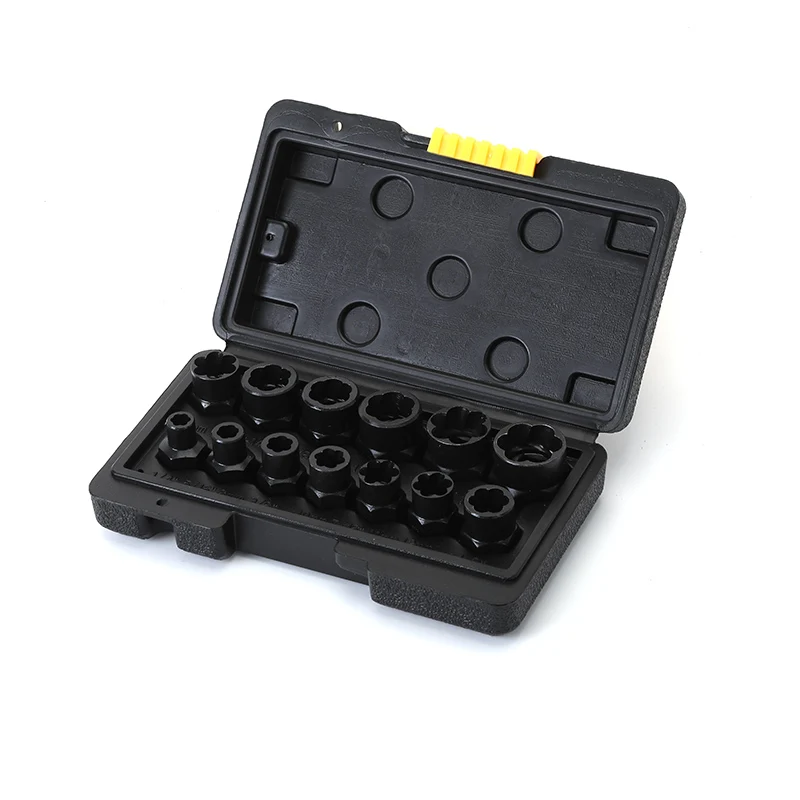14 Pieces Impact Bolt & Nut Remover Set Cr-Mo Steel Bolt Extractor Tool Set with Solid Storage Case for Industrial Drop Shipping