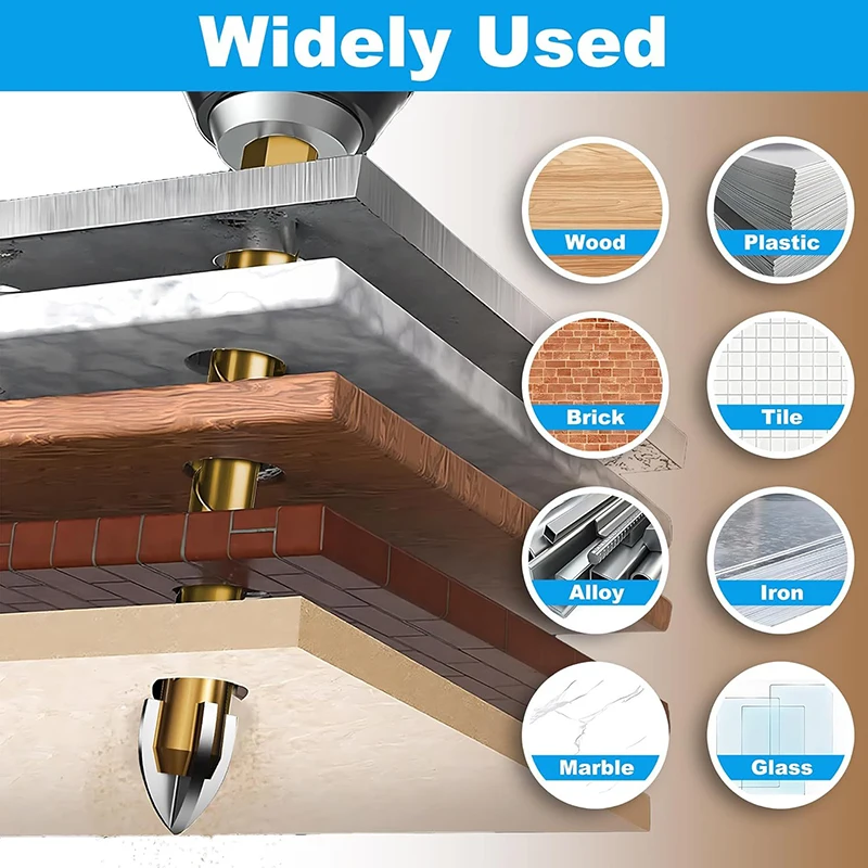 4-Edge Cross Drill Bit Set 7 sizes professional multifunctional drill bit set is complete size to meet your different needs, fast drilling speed, u-shaped chip removal groove, effectively prevent chip accumulation stagnation, improve operation, meet your different needs and improve work efficiency.