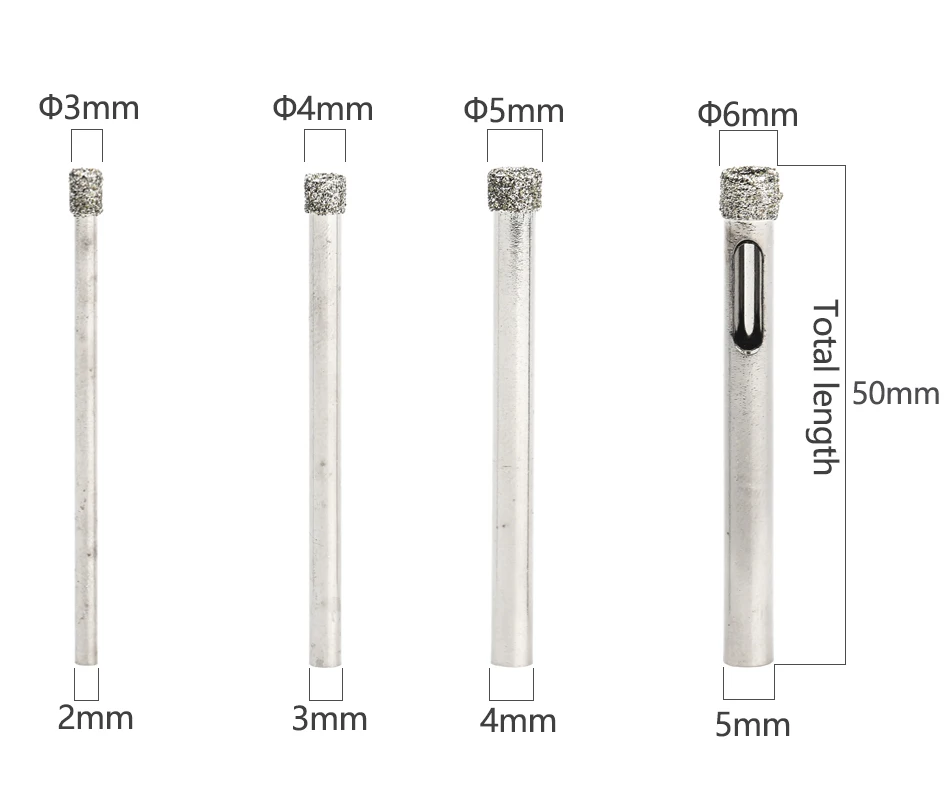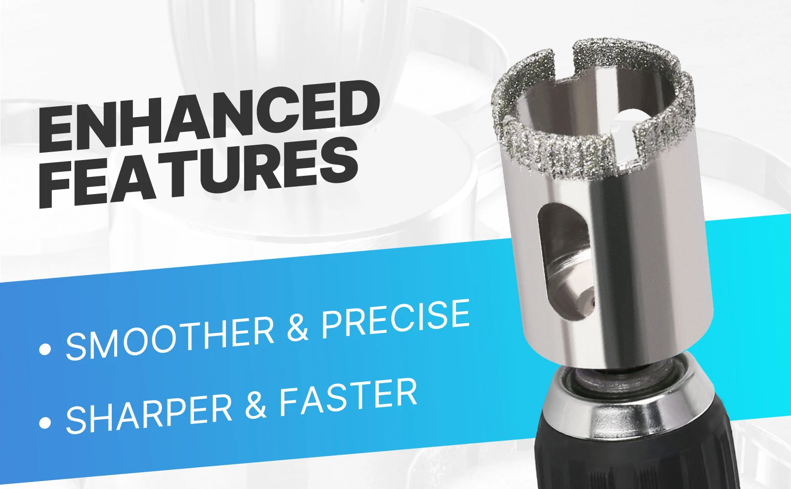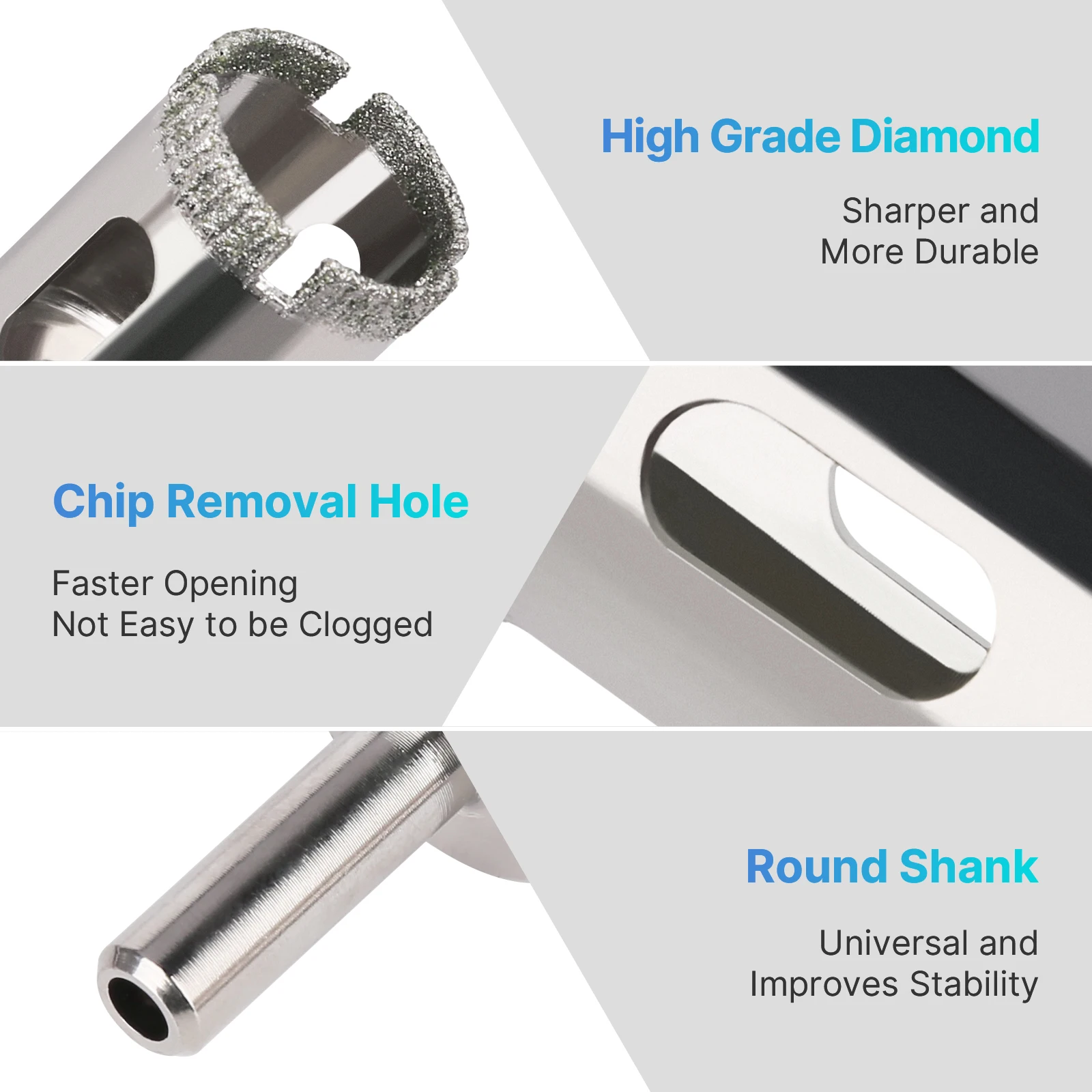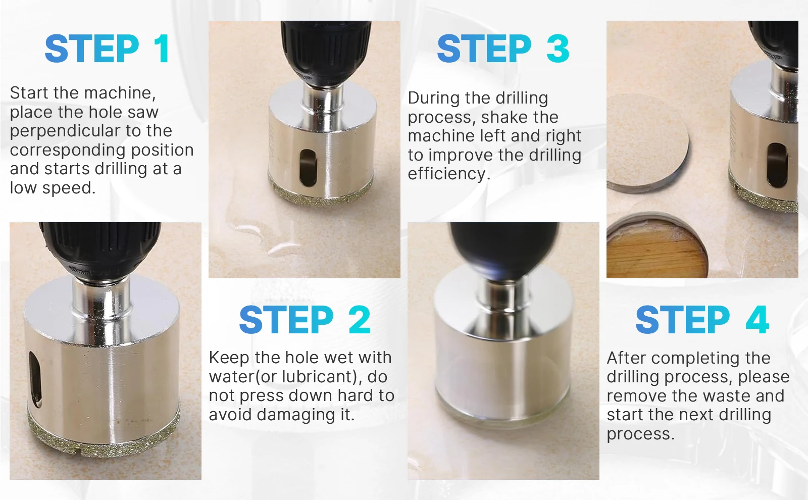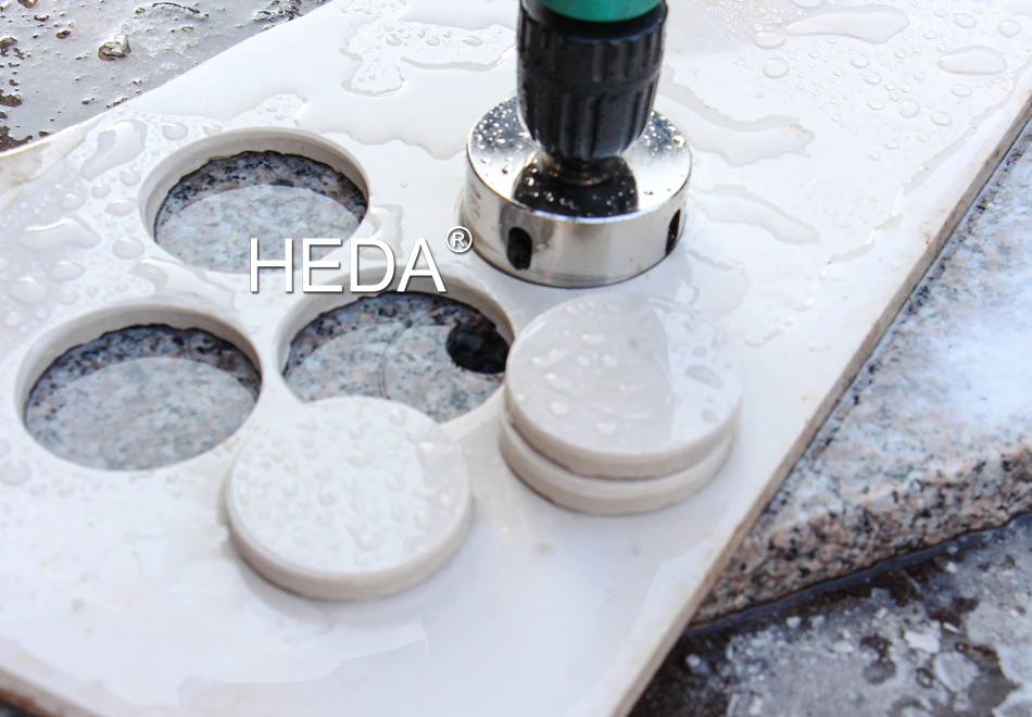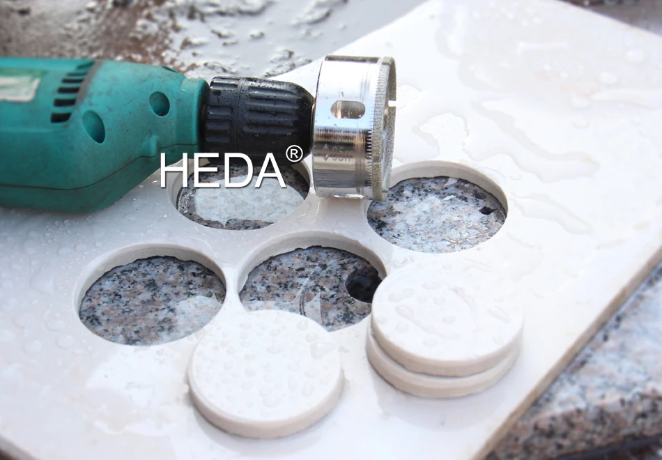 2. This diamond coated core drill bit removes a complete circle from glass, tiles, marble, granite, ceramic, etc.